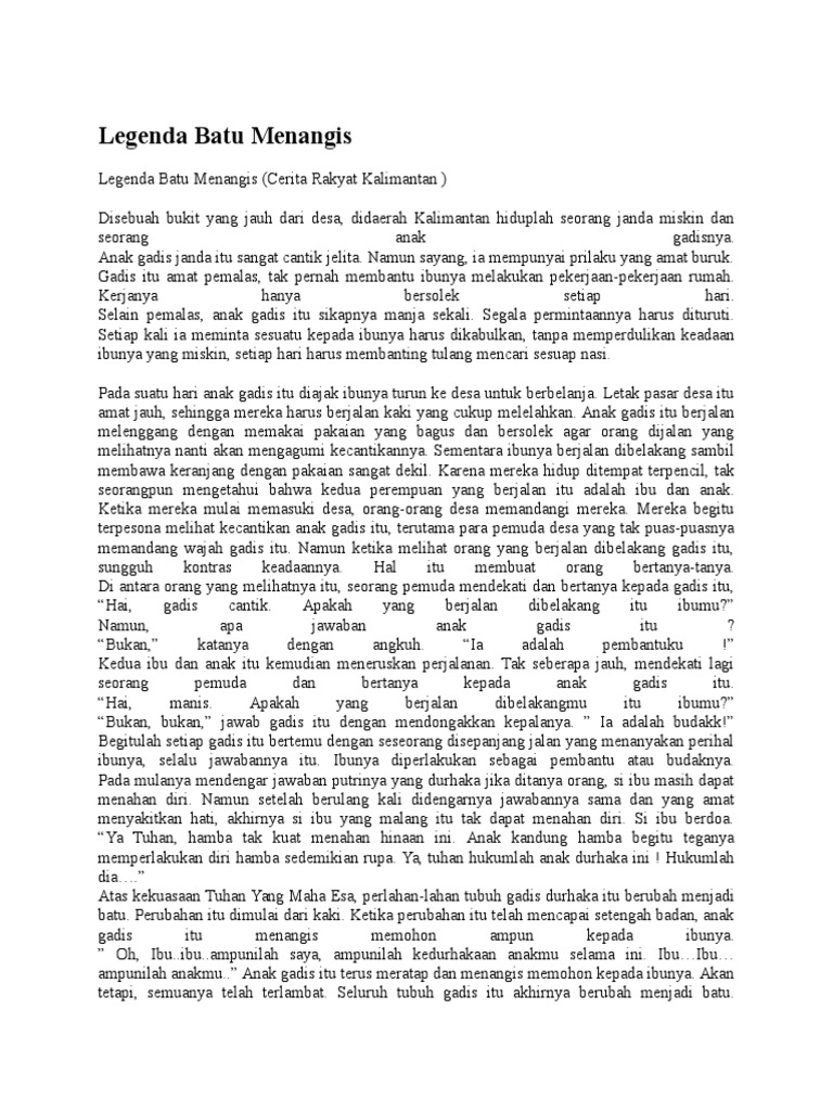 Ceritakan Kembali Isi Cerita Legenda Batu Menangis Brainlycoid