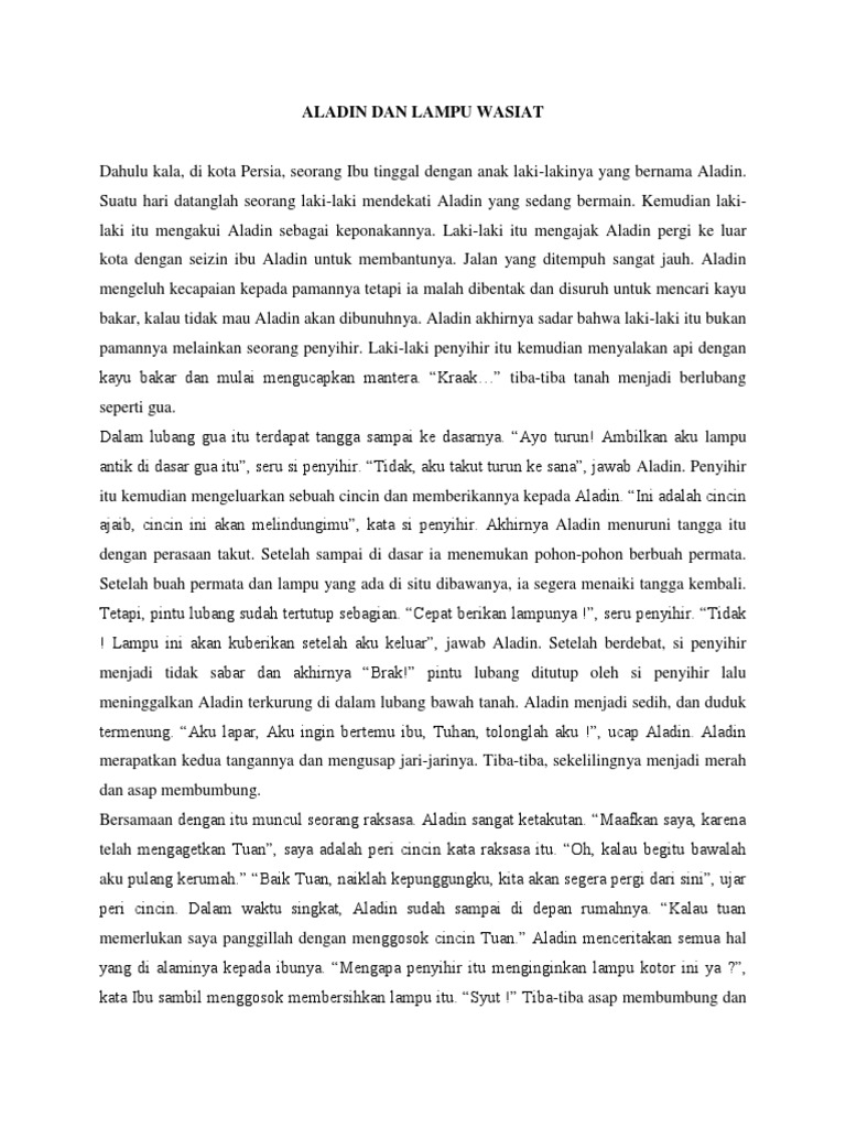Cerita dongeng aladin dan lampu ajaib. Apalagi sejak dongeng aladin dijadikan salah satu filem animasi disney sepertinya hampir semua anak dijaman tahun 2000 an mengetahui cerita aladin. Page 1 of 3. Dia tinggal berdua dengan ibunya.