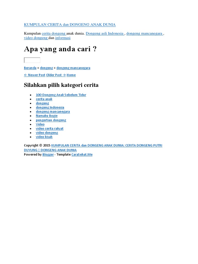 Kumpulan cerita dongeng anak dunia. Berisi berbagai dongeng yang berasal dari indonesia dan dongeng dari mancanegarakumpulan dongeng ini juga terdiri dari dari dongeng fabel atau dongeng yang tokoh utamanya adalah binatang dongeng rakyat yang merupakan dongeng berdasarkan cerita rakyat dan berbagai macam dongeng lainnya. Dongeng si kancil dan siput dongeng anak dunia. Kumpulan dan contoh cerita rakyat dongeng anak indonesia nusantara tentang legenda danau toba asal usul candi hikayat bunga kemuning cerita malin kundang.
