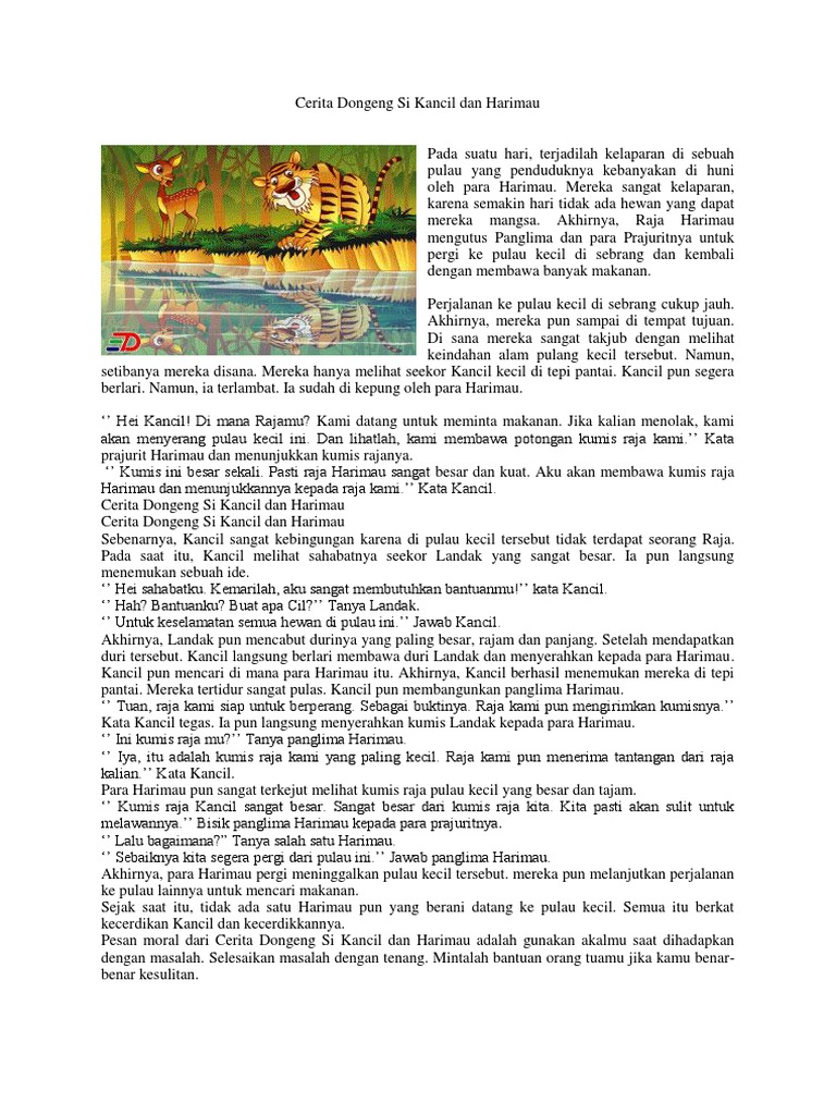 Kumpulan Dongeng Anak Si Kancil Cerita Si Kancil Dan Harimau Wattpad
