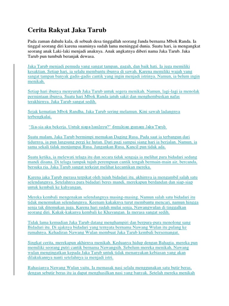 Dongeng cerita rakyat jaka tarub. Walaupun demikian sebenarnya dongeng jaka tarub memiliki banyak versi baik di indonesia maupun di luar negeri. Babad tanah jawi berisi sejarah raja raja yang pernah berkuasa di tanah jawa mulai dari dinasti syailendra dinasti sanjaya dinasti medang kamulan dinasti kahuripan janggala kadiri dinasti singhasari majapahit. Teks cerita rakyat jaka tarub dan 7 bidadari dalam bahasa inggris.