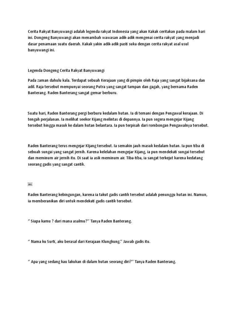 Bercerita tentang raden banterang yang tidak percaya kepada. Dongeng dari jawa timur. Cerita rakyat banyuwangi adalah legenda rakyat indonesia yang akan kakak ceritakan pada malam hari ini.