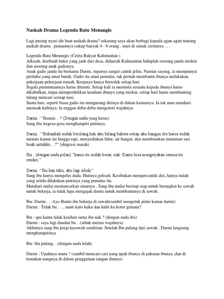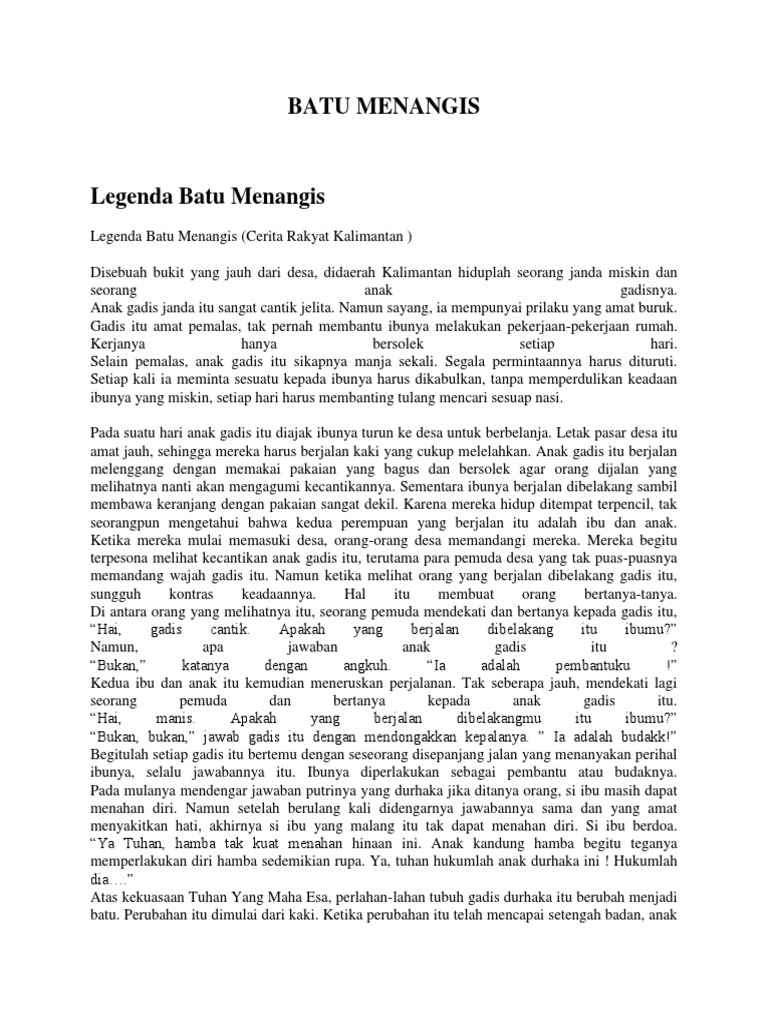 Cerita Legenda Batu Menangis Bahasa Inggris Dan Terjemahan Contoh