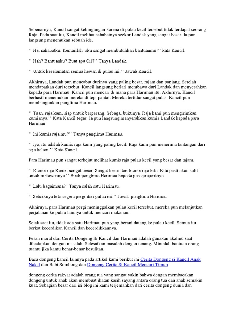 Kumpulan dongeng anak pendek buku cerita anak sebelum tidur. Cerita rakyat kancil memang sangat banyak dan sangat di sukai oleh anak anak.